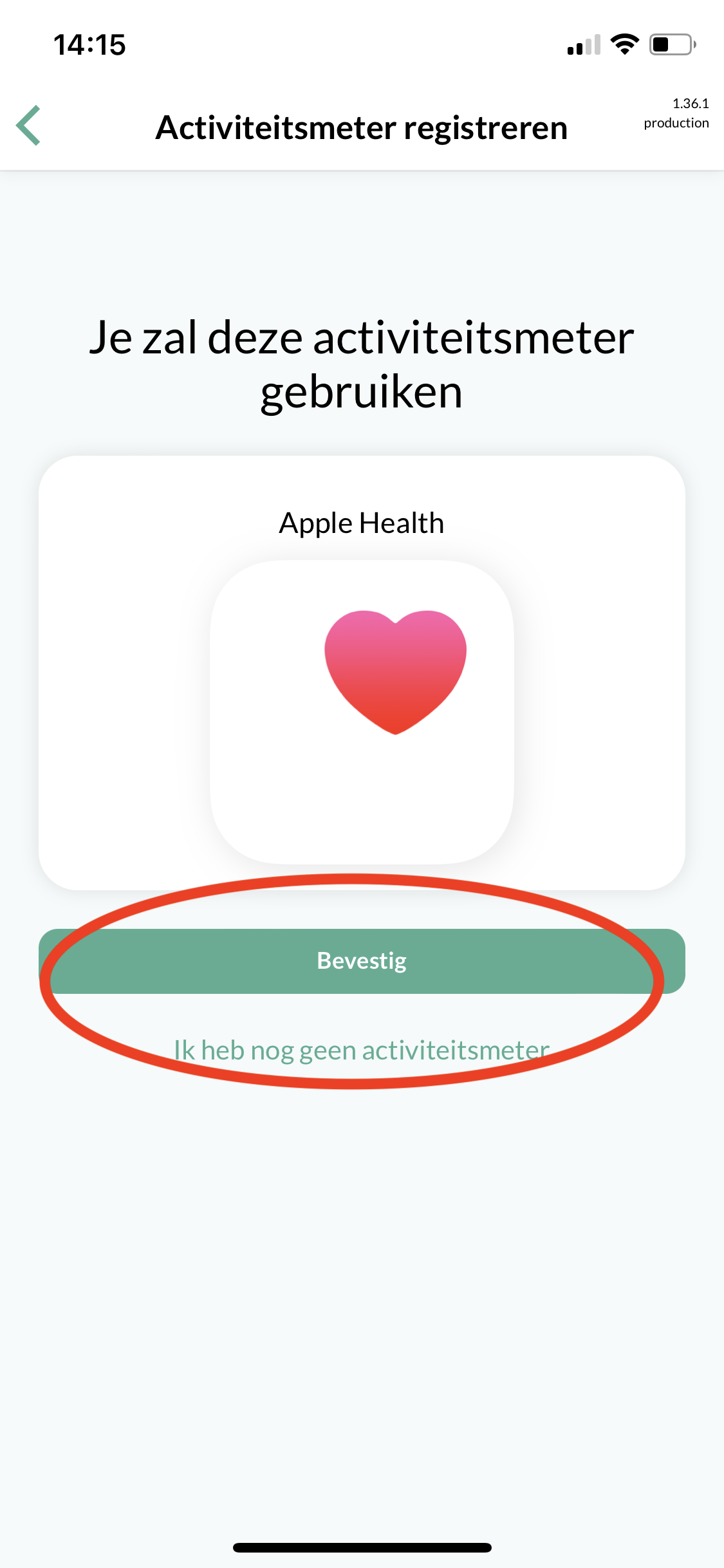 Klik op “Bevestigen” om uw activity tracker te selecteren.