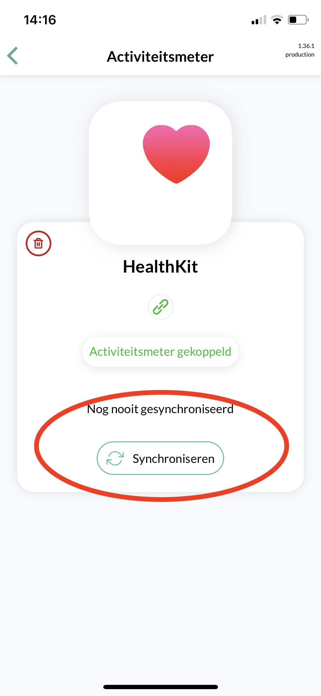 Om uw stappen te synchroniseren, klikt u op “Synchroniseren”.